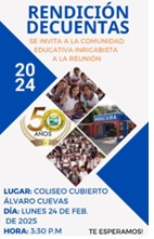 La Rectora de La Gran Familia INRICABASTA Emilia Nadjar Badrán convoca a rendición de cuentas 2024 La rectora general Emilia Nadjar Badrán de la Institución Educativa Técnica Agropecuaria Ricardo Castellar Barrios invita a estudiantes, docentes, padres de familia y comunidad en general a la Rendición de Cuentas de la vigencia 2024. El evento se llevará a cabo el 24 de Febrero a las 3:30 p. m. en el Coliseo Álvaro Cuevas Pérez, donde se detallará la ejecución presupuestal, inversiones realizadas y transparencia en el manejo de los recursos asignados a la Institución. Estás actividades resaltan la importancia de este espacio para fortalecer la confianza institucional y garantizar una administración eficiente. ¡Su participación es vital para seguir avanzando en la excelencia educativa!